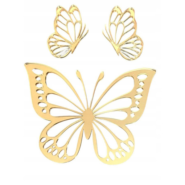 TOPPER NA BOK TORTU MOTYL MOTYLKI 3szt złote lustro